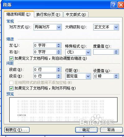 5、将鼠标放在前一页的最后,用DEL健删除。如果空白面是最后一页,且鼠标在第一行,可选“格式”-->段落,将这一行的行距设为固定值1磅,空白页就会消失。