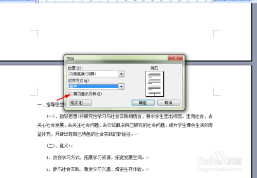 5、单机”插入",将显示如下图所示。将首页显示页码前的箭头取消。点击确定。