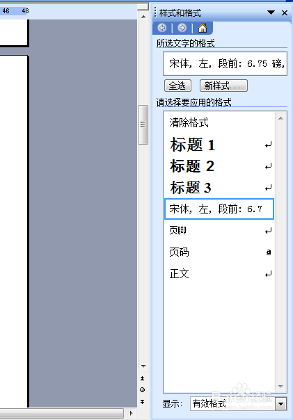 6、单机“格式”,再点击“样式与格式”,将显示如下图。