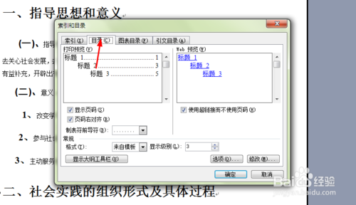 9、点击下图箭头所指字样,选择所要设置的目录格式,单机确定即可。