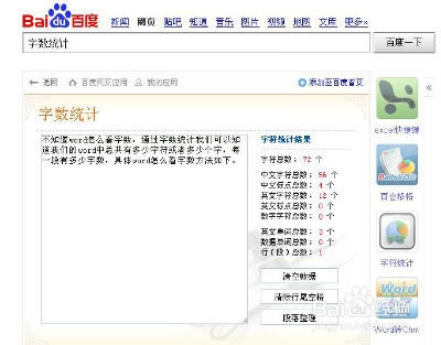 5、当然,如过你不拘一格的话,直接将文字复制出来到,百度搜索“字数统计”就有字数统计应用了,将文字复制进去就会算出字数了。