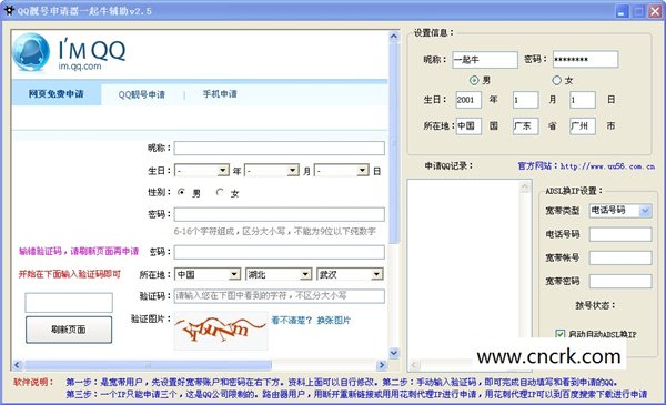 QQ靓号申请器一起牛辅助非常简单的操作。。只需填写一个验证码就乐意申请到一个QQ靓号!!!