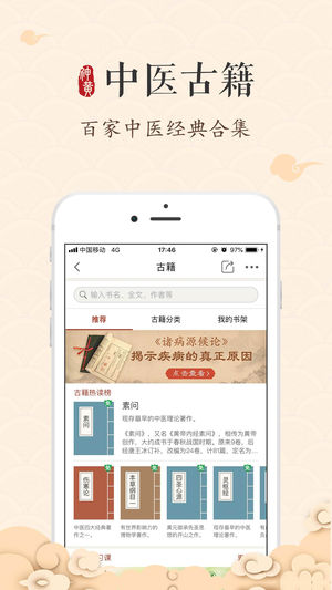 中医经典著作——涵盖内经、伤寒、金匮、难经、本草等中医经典著作原本及解读达600余本。养生食疗保健——涵盖饮膳、延寿、食疗、按摩养生等多主题养生保健书籍60余本。