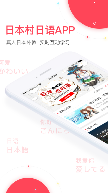 日本村日语app专注于在线语言教学的探索与改进,并创建了在线课程研发中心。主要定位是学生与社会人士,即毕业后投入职场,不管在工作、进修或者是在日常的生活上使用日语需求的人。