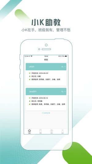 小K助教——班级管理掌上助手【应用介绍】小K助教是课工场旗下的班级管理工具,可以查看课表、对课程进行考勤以及针对考勤进行统计分析等,主要辅助老师进行各种教学相关业务。