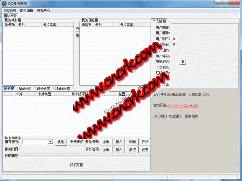 qq魔法卡片菲佣辅助是一款功能强大的魔法卡片辅助助手,能够帮助玩家在游戏中炼制成套的卡片,可实现的功能有自动合成,自动偷炉,自动扣炉,自动取加合成的卡片等,是一款不错的qq魔法卡片辅助器。魔法卡片辅助是纯手工辅助工具,方便大家手工管理多个小号。大家可右键进入监控画面进行手工**作。另外,由于切换网页FLASH较耗内存,所以内存巨大请不要紧张。祝大家使用愉快。