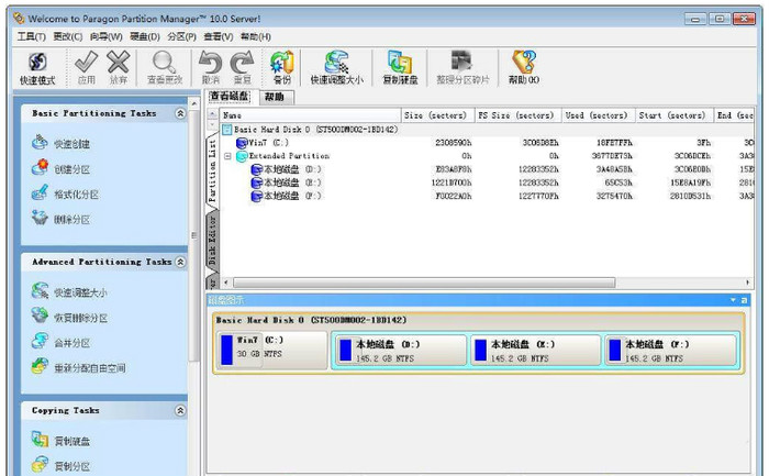 Paragon Partition Manager 是一套磁盘管理软件,是目前为止最好用的磁盘管理工具之一,能够优化磁盘使应用程序和系统速度变得更快,不损失磁盘数据下调整分区大小,对磁盘进行分区,并可以在不同的分区以及分区之间进行大小调整、移动、隐藏、合并、删除、格式化、搬移分区等**作,可复制整个硬盘资料到分区,恢复丢失或者删除的分区和数据,无需恢复受到破坏的系统就可磁盘数据恢复或拷贝到其他磁盘。能够管理安装多**作系统,方便的转换系统分区格式,也有备份数据的功能,支持Vista系统下操作。Paragon Partition Manager有着直觉的图形使用介面和支持鼠标**作。主要功能包括:能够不损失硬盘资料下对硬盘分区做大小调整、能够将NTFS文件系统转换成FAT、FAT32或FAT32文件系统转换成FAT 文件系统、支持制作、格式化、删除、复制、隐藏、搬移分区、可复制整个硬盘资料到其它分区、支持长文件名、支持FAT、FAT32、NTFS、HPFS、Ext2FS分区和大于8GB 大容量硬盘。