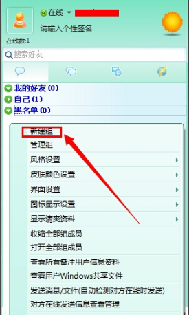 6、在好友列表,点击右键,在下拉菜单中选择“新建组”,可以对好友进行分组。