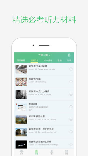 听力材料包含中考真题、高考真题、四级真题、六级真题、专四真题、新概念、雅思、托福、歌曲、影视等,每篇材料由专业英语教师精心筛选、编撰而成。
