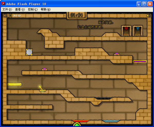 第一关火人走到火水,拿到宝石。