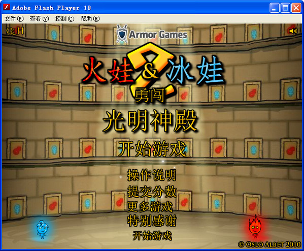 3、在每个寺庙男孩和女孩必须运行和消防和水之间跳转,你应该知道,FIREBOY免疫火,这样他就可以在沸腾的熔岩池自由的一步,但他必须小心从踏进水中。 Watergirl是水池性,但在熔岩步进时受伤。双方charachters应提防的方式(绿色或黑色)任何其他水坑。在各个屏幕上的目标是去的大门,这将导致你在寺庙的隔壁房间。