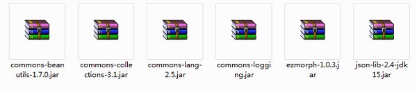 要使程序可以运行必须引入JSON-lib包,JSON-lib包同时依赖于以下的JAR包:commons-lang.jar