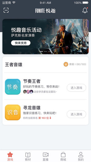 悦趣音乐app致力于打造国际一线的萨克斯教育品牌,让学习、教授、演奏、经营萨克斯成为一种乐趣。悦趣音乐中心创立于2014年,由萨克斯中国网悦趣音乐团队管理运营。悦趣课程的研发团队由国内一线萨克斯演奏家、海归精英、音乐学院教授与多位国际著名演奏家与教育家共同组成,并由萨克斯中国网教研顾问章啸路副教授编写《悦趣萨克斯"轻松学"系统教程》。