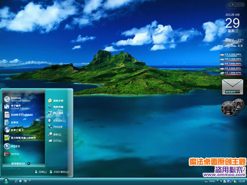 魔法桌面大溪地-塔希提岛电脑桌面主题是一款xp、vista、win7三系统通用主题,塔希提岛风景优美,海风习习,是夏天度假的好去处。