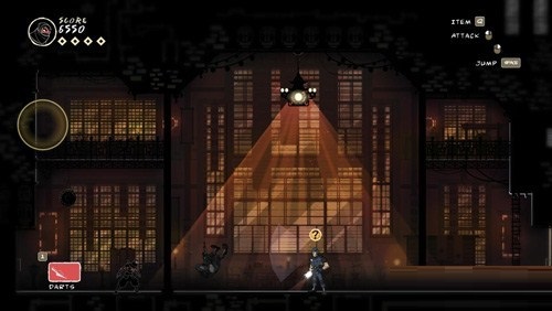 游戏核心的玩法就是潜行,暗杀,以一个潜影一族忍者的身份进行。暗杀玩法从最简单的背刺暗杀出发,进一步延伸出各种刺杀方式,包括悬挂绞杀、空中刺杀、隔墙暗杀、藏匿刺杀等等,都以技能点的形式一步步拓展开来。对于任何一个敌人,无论他的行动方式是怎样的,你可以自己选择一个最恰当的角度结束他的生命。在游戏核心玩法中,视野是最重要的一个因素,包括光线和声音。忍者面对的是现代都市具有高科技装备的军团士兵,硬拼、无双无疑是游戏开发者最不想让我们去尝试的,也不是一个典型忍者的行为方式,因此绕开敌人的视野是游戏进行的核心策略,当然敌人的视野侦察方式也不是静止或是一成不变的,随着游戏的进行,士兵的装备也会越来越先进。其次一个因素就是敌人的行为模式,不同的敌人有不同的行为模式,有些是比较呆笨的,有些具备非常先进的寻路模式,观察敌人的行为模式,结合视野,做出自己的决策,或是暗杀,或是潜入,都需要忍者的耐心。