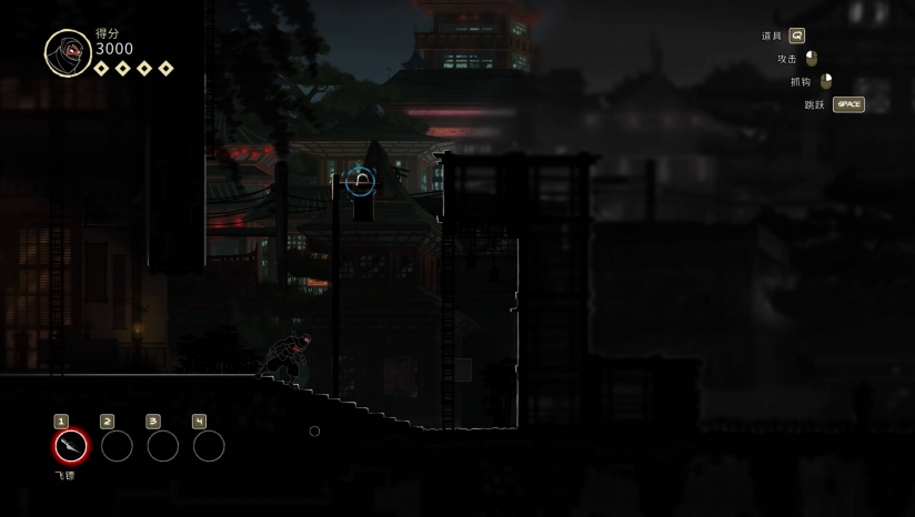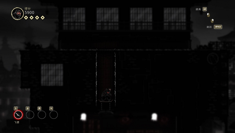 这里切不可在这里飞镖灯。因为这个灯会破的,下面包括右边还有一个高处的敌人能听到声音。打光过来。
