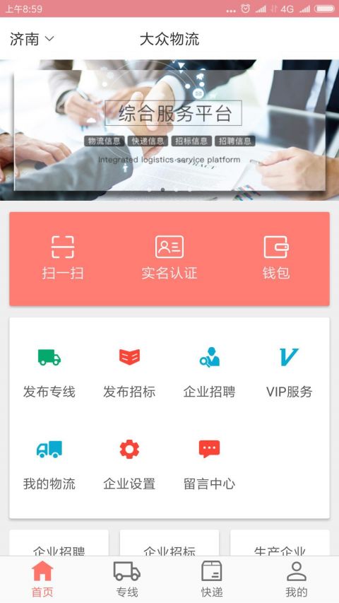 大众物流app——提供真实可靠的物流、快递、招标、招聘及企业用户资源,为用户提供诚信认证、交易撮合和货物跟踪等服务;大众物流app通过构建全国诚信运输网络,进而实现制造、商贸、物流、快递及运输车辆间的互信互通,打造流程标准、管控透明、诚实守信的在线物流交易服务体系。