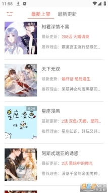 漫画分类完备,每日皆有编辑精心挑选推荐!条式排版打破传统漫画模式,为手机阅读带来极致适配体验!