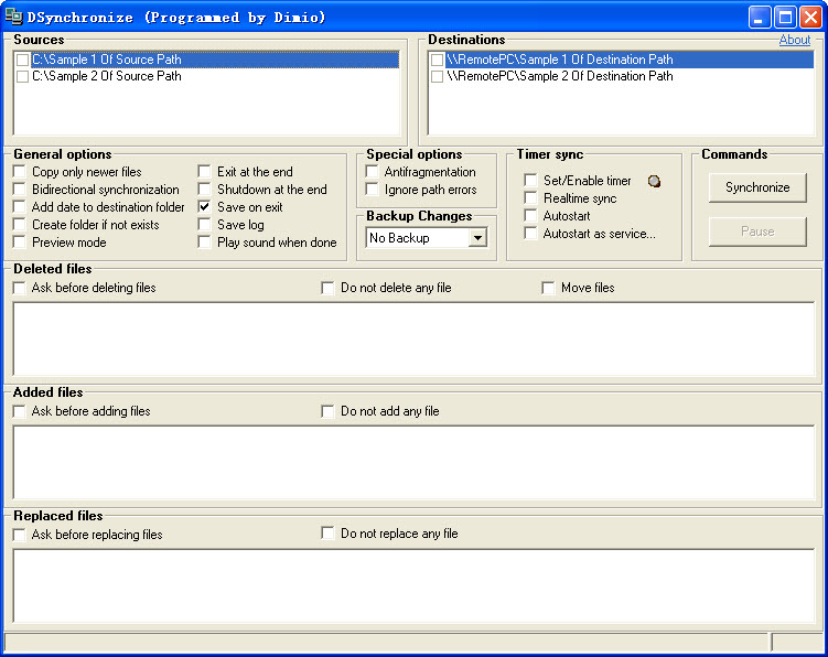 dsynchronize是一个文件同步工具,可以在本机或网络上同步相关的文件/文件夹。它支持按扩展名、双向以及定时同步。除了窗口模式外,它还提供了命令行模式的选择。