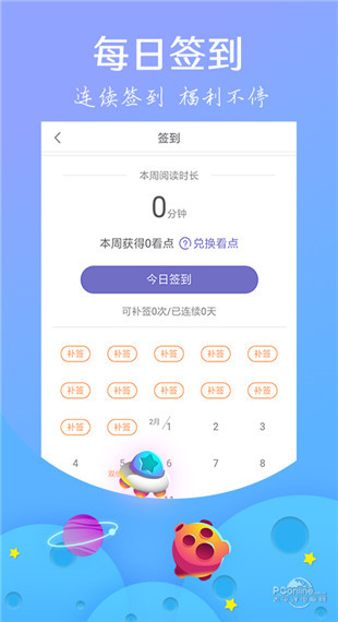 5、每日签到,领取积分,签得越多,领得越多,看书不花钱。