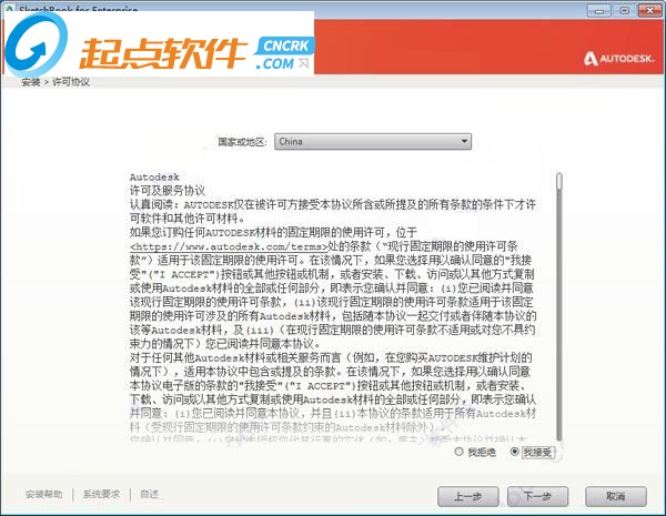4、对安装过程中使用的语言选择,点击我接收软件的许可及服务协议,点击下一步;