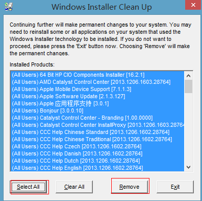 - 软件将显示出一个列出了当前经Windows Installer安装上去的程序列表,您可以选中您软件名称然后删掉此软件的Windows Installer安装信息。- 移除选定软件在文件和注册表中保存的相关配置信息。
