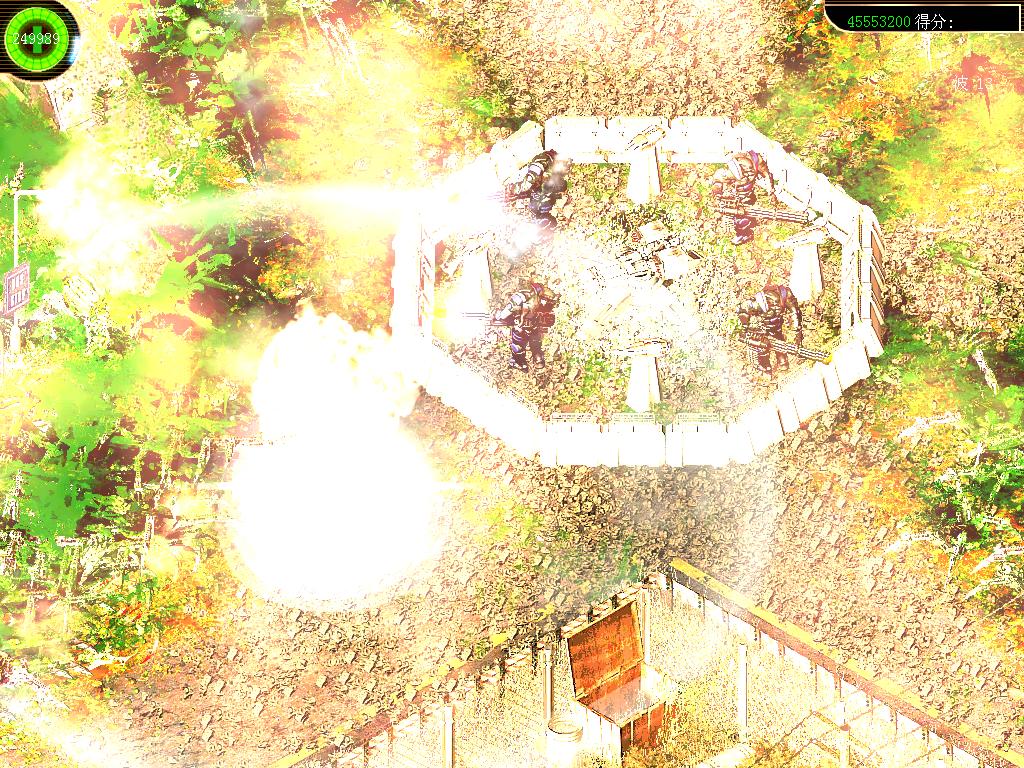 花开两朵各表一枝,再说说MAX来到了笋头人的地方,偷听到笋头异型要发射一颗火箭来摧毁地球。来拯救世界吧!MAX来到一个长长的街道上,天上还有飞船空袭,并且不停的扔下异型。沿路一直走到头然后右转,有一个箱子打破后能吃到枪。然后朝左拐一直快走到头时你会发现墙上有四个箱子,打破就能进去了。如果你实在是没办法找到箱子的话只能先存个盘然后沿街开枪,只到打到墙上会出现血条时就找到了。