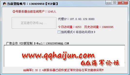 qq海军空间人气王 是一个专业刷qq空间的工具,能实现批量刷qq空间人气,一个qq小号能刷到100点人气,附加自动查询qq空间人气功能