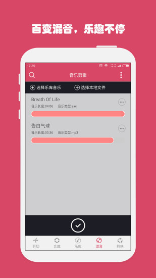 音乐剪辑是一款功能强大、操作简单的音频剪辑制作软件,可以轻松的将手机中的MP3歌曲将自己想要的片段剪切出来,对于铃声制作、音频合成都是不错的选择。