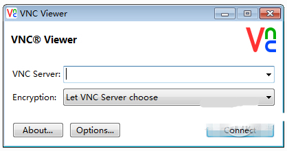 在台式机服务器上开启 VNC Server后,在笔记本客户端上打开 VNC Viewer,主界面如下,相当简洁,你可以直接在上方数据栏里输入服务器端的主机名或IP地址,即可建立连接。