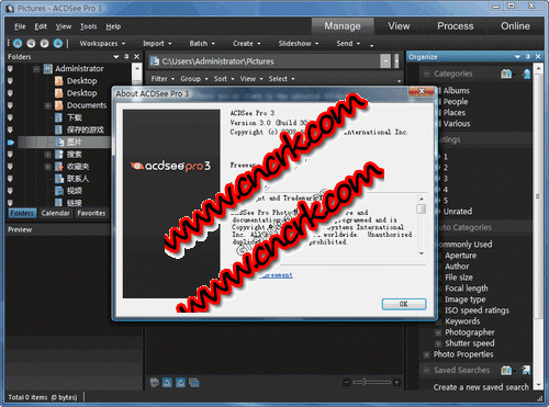 ACDSee Pro V5.2.157 英文官方安装版 acdsee 是目前最流行的数字图象处理软件,它能广泛应用于图片的获取、管理、浏览、优化甚至和他人的分享!使用 acdsee,你可以从数码相机和扫描仪高效获取图片,并进行便捷的查找、组织和预览。超过 50 种常用多媒体格式被一网打尽!作为最重量级看图软件,它能快速、高质量显示您的图片,再配以内置的音频播放器,我们就可以享用它播放出来的精彩幻灯片了。acdsee 还能处理如 mpeg 之类常用的视频文件。