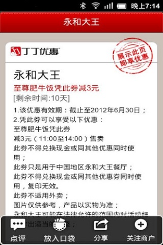 只要向服务员展示手机优惠券即可使用,省去打印、短信下载等繁琐步骤