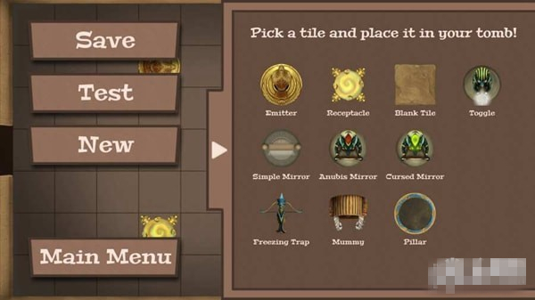 《盗墓迷镜Mirrors》是一款光学物理游戏,灵感来自古埃及在金字塔中用镜子反射光线的方法。在游戏中,玩家扮演一位冒险家,在大量的坟墓中寻找宝藏。玩家要使用镜子反射光束,才能打开一道道的墓门,获得墓穴中的宝藏。玩家还可以尝试使用关卡设计创建自己的关卡,然后分享给朋友和Ta们一起冒险。