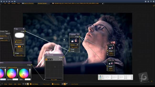 5.后期:视频编辑(Video Editing)是一个针对图像序列以及视频文件处理的一个简单的非线剪辑模块,可以设置转场,添加标题文字、音频、以及简单的调色等操作。和市面上一些常见的非线软件的区别在于,它自带的特效部分非常简单,很多时候是依赖 Blender 自身的功能,需要先将特效渲染出来,或者经过合成节点的处理后(例如:太阳光斑、抠像),并且输出成图像序列,才能继续进行合成制作,以达到想要的效果。