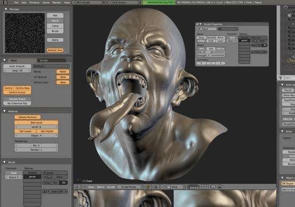 3.雕刻与纹理绘制:这两个模式下的笔刷都是基于“屏幕投影”进行操作的,而非笔刷所在网格的“面法线方向”。由于 Blender 并不存在法线笔刷(笔刷选择也是屏幕投影),所以在操作方式和手感上,会和一般基于法线笔刷的雕刻类软件,或纹理绘制类的软件有所区别。