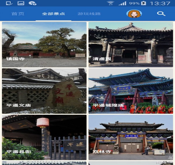 听游天下——平遥古城导游:专业的智能语音导游系统,专为喜欢自由行的旅行爱好者而设计。携手科大讯飞,带给您独特的平遥古城印象。平遥古城是中国境内保存最为完整的一座古代县城,是中国汉民族城市在明清时期的杰出范例,在中国历史的发展中,为人们展示了一幅非同寻常的文化、社会、经济及宗教发展的完整画卷。平遥古城有“龟城”之称,街道格局为“土”字形,整体布局遵从八卦方位,体现了明清时期城市规划理念和形制分布。城内外有各类遗址、古建筑300多处,有保存完整的明清民宅近4000座,街道商铺都体现历史原貌,被称作研究中国古代城市的活样本。