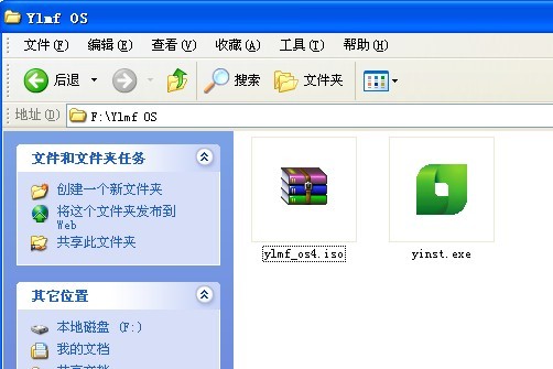 首先,我们将下载到的 4.0系统镜像文件和Yinst安装器,复制到同一文件夹下,比如在F盘新建好的文件夹。如下图所示: