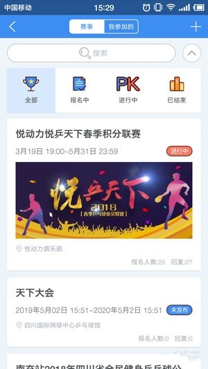 悦动力是一款运动爱好者的运动社交应用,致力于为用户提供更好更方便的乒乓球比赛活动体验;为用户提供更加便捷的寻找教练,并且可以学习培训课程;为用户提供俱乐部功能,让运动爱好者有自己的圈子;用户可以自由组织和报名参与各种活动;悦动力让运动爱好者聚集在一起,悦动力让运动变得有趣!悦动力有专业赛事支持系统,利用专业软件为每场比赛进行打分,根据设置的相关规则自动计算排名和其它信息。基于移动互联网的赛事执行,可以让专业赛事更具观赏性,让业余赛事执行便捷轻松。