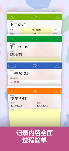 “宝宝生活记录”的丰富功能均能方便快速地实现。根据移动设备的特点分别为iPhone和iPad优化的界面和操作方式,让您记录、查看、编辑等操作能通过最简单的步骤完成。