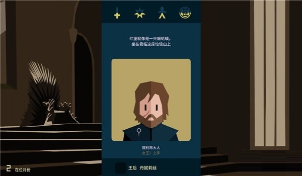 1、游戏可以选择9个人物进行游戏,真实还原了权利与游戏的残酷,游戏比较头疼的是,游戏内的4个数值,军力,宗教,民心与经济,4个都不能太高,也不能太低,需要平衡,试过很多次都是某一项太高或者太低导致GG,不过作为权游粉丝。2、这个游戏无论是剧情,bgm,都是满分,无可挑剔,很耐玩,而且18块钱也不贵,推荐各位去玩一下,真的不错,虽然会无限死,但是可以在不断的死亡轮回中解锁不同的剧情和人物。