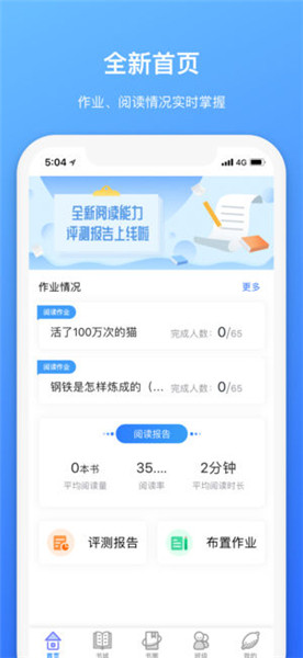 1.作业功能:提供发布与检查班级阅读、朗读和作业公告功能。系统自动生成作业报告,减轻老师批改工作量。