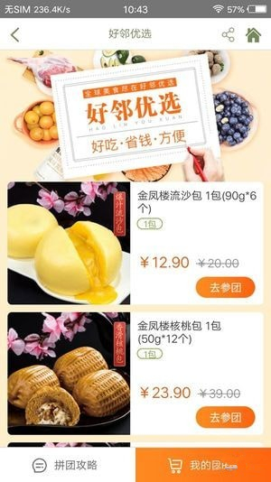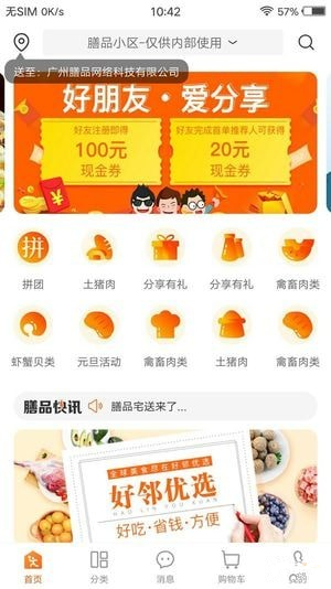 应广大用户要求,膳品宅送app增设“好邻优选”项目,为用户提供原汁原味、价格公道的各地尖货。用户可通过首页的栏目模块进入“好邻优选”,以拼团、社区自提的方式购买和提取商品。