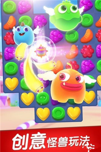 2.独创的怪兽辅助玩法,消除糖果来为怪兽充能