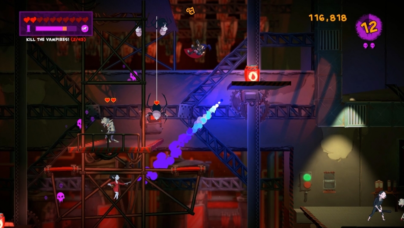 由Screwtape Studios开发《Damsel》是一个快节奏单人平台动作游戏。游戏设定了一个黑暗的卡通世界,玩家要扮演政府特工,为拯救世界和吸血鬼战斗。借助角色的速度和灵活性,通过十几个场景,应对各种各样的敌人。游戏提供了不同的模式,玩家可以挑战高分数,冲刺排行榜的顶端。【游戏特点】