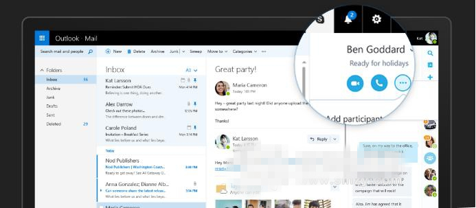 Skype 聊天和视频通话之间进行切换,而不用退出收件箱。