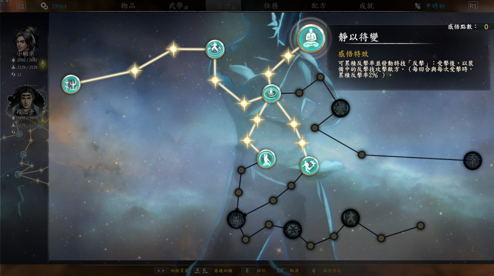 刚柔动静巧拙六大感悟,搭配内功外功轻功的技能树系统构成了《河洛群侠传》超好玩的武学系统,为你和队友们规划独一无二的发展路线吧!