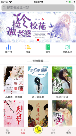 1.听书专区:《鬼吹灯》《斗破苍穹》《扶摇直上》等经典好文,有声阅读,解放双眼。2.分类清晰:多种书籍分类清晰,轻轻松松找到你想看到的书。