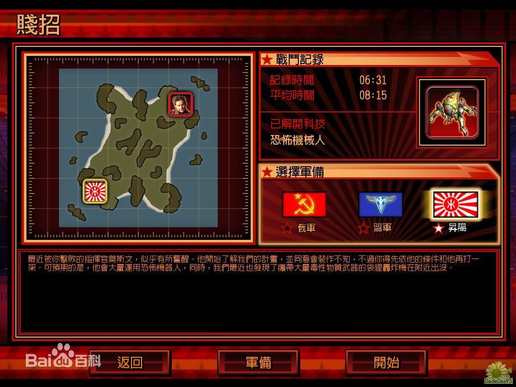 注:只有在通过苏联战役第一关后,才可以进行盟军与日本战役。