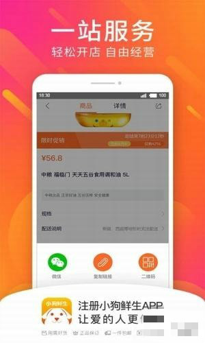 小狗鲜生app是一个专注“社交电商”的移动互联网平台(S2SEC),于2018年6月25日正式上线运营。平台通过云端资源的共享,为用户提供商品、物流、IT、培训、售后等一站式服务,让普通人也可以成为店主,通过手机轻松开展网上零售工作。小狗鲜生app所有商品直采于领先的品牌商和地标性农产品基地,去除中间商层层加价,由专业人员精挑细选,商品涵盖生活刚需。平台全部买卖操作均可通过手机在移动互联网上完成,相较实体店与传统互联网的销售方式,成本更低、价格优势更明显。
