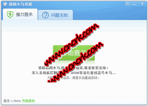 顽固木马克星设计的初衷是查杀顽固类木马,修复用户系统,并且防止用户再次感染,为保证有效性,默认每次启动之后先进行更新升级。